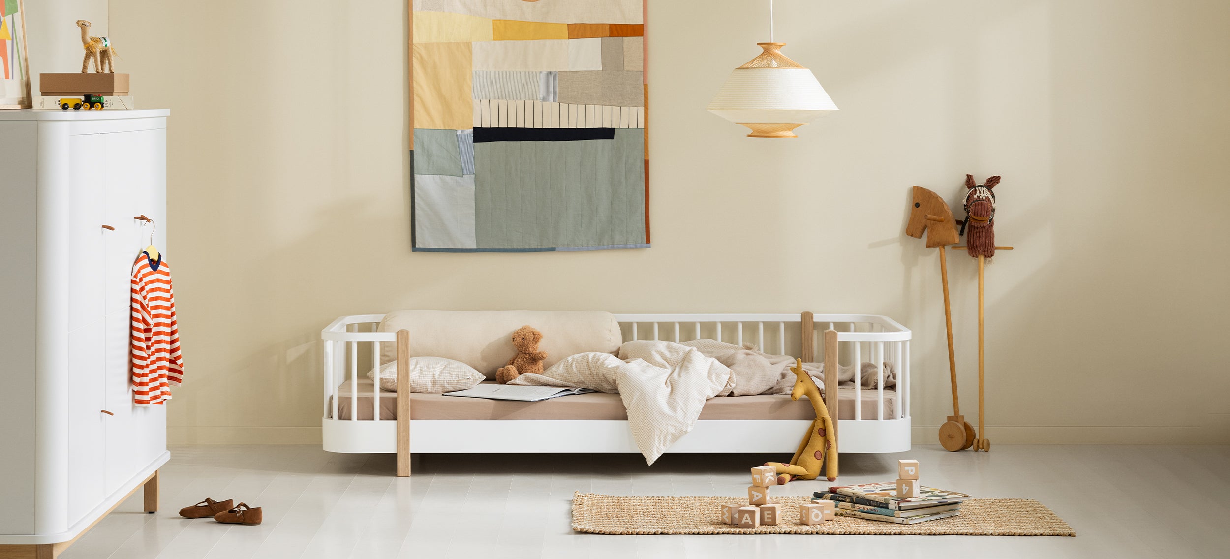 Les armoires Wood sont des meubles fonctionnels et au design épuré, qui offrent de la place pour tout, comme les jouets favoris et les vêtements. Nous apprécions l'esthétique simple, l'espace et la longue durée de vie.